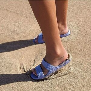 They have an air pocket foot bed that creates a soft and flexible slip on sandal.