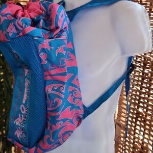 This is a Hawaiian Airlines Na Wahine O Ke Kai Moloka'i to Oahu Canoe Race 2017 drawstring backpack bag.
