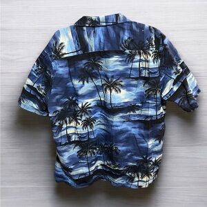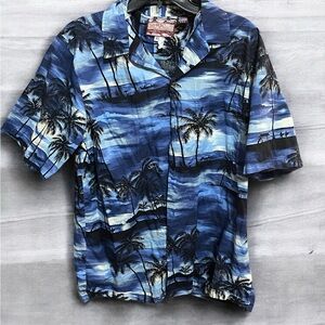 Hawaiian Blue and Black Casual Button Down Shirt. Made in the USA