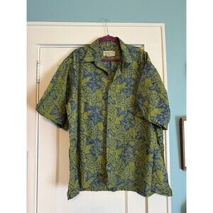Hawaiian Button Up Short Sleeve Shirt Green and Blue Johari West 3XL