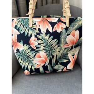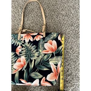 Hawaiian Floral Canvas Tote Bag Zipper Closure Hibiscus Flowers 💐