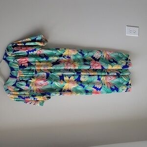 Hawaiian Floral Midi Pull Over Cover Up Short Sleeves Size Small
