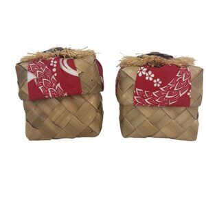 Hawaiian Handmade Natural Fiber Woven Lidded 2 PC Box Set Tiki Island Gift Boxes