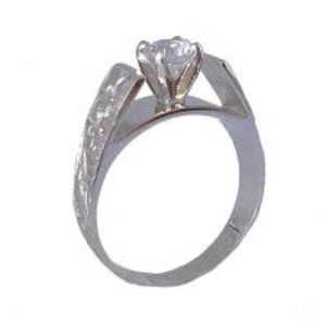 Authentic Hawaiian Heirloom STERLING Silver Cubic Zirconia .50 CT Plumeria Scroll French Mount Ring. Size 6.5. Retails $250.00.