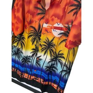 Great for pairing with Chino shorts for a Hawaii style. All over sunset print perfect for a tropical vacation shirt. Pair with Jeans for a Casual social outdoor gathering. Lightweight good for layering and leaving open over a tank. Good closet staple casual shirt.