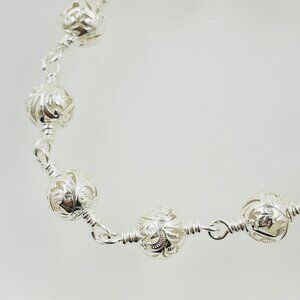 Adorn your wrist with this stunning Maile-inspired bracelet, featuring 8mm cutout beads delicately engraved to reflect the revered Hawaiian symbol of respect and unity. Crafted with radiant high-quality silver plating, its lightweight design and smooth finish make it a comfortable choice for daily wear. With a convenient 2-inch extender, it effortlessly adjusts to your perfect fit—making this piece a versatile treasure that brings a touch of aloha to any look.