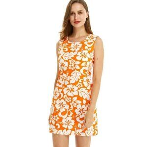 Hawaiian Mini Dress Orange Floral Aloha Summer