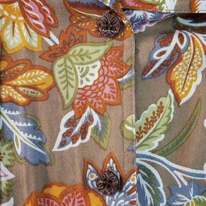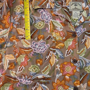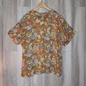 Hawaiian Palm Colorful Floral Short Sleeve Collared Casual Button Up Women 2XL