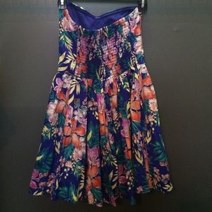 Hawaiian patterned dress. Pleaded skirt, pointy top, and v shaped waistline. A very fun and flirty, short dress. Perfect for summer!