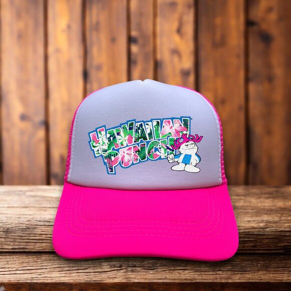 Hawaiian Punch Mens Trucker Hat Pink Snapback Retro Logo 80s Baseball Cap
