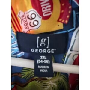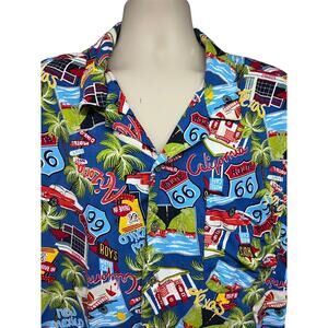 Mens Vintage Hawaiian Tiki Retro Route 66 All Over Print Blue Button Up Shirt 3XL 54/56 Pocket Lightweight Classic Cars Diners Motels Beach USA. Great Pre-Owned Vintage Condition Gently Worn. Ships from smoke free home.