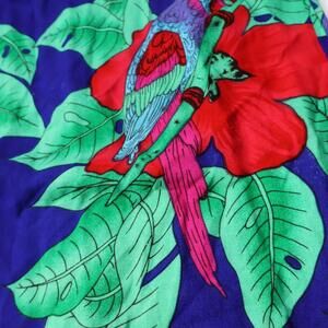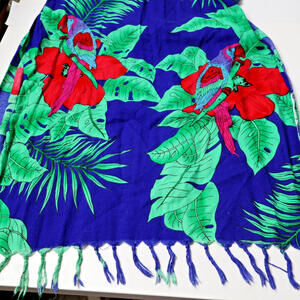 Hawaiian Scarf Wrap Sarong Hawaii Vacation Beach Blue Parrots Tropical Fringe * 100% rayon resort wear Touch of Hawaii blue green red