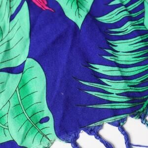 Hawaiian Scarf Wrap Sarong Hawaii Vacation Beach Blue Parrots Tropical Fringe *