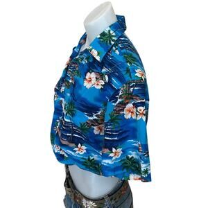 Hawaiian Shirt Blue Tropical Button Up Crop Top One Size Boxy Coconutgirl Unique