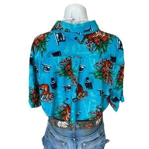 Hawaiian Shirt Button Down Crop Top One Size Boxy Surfer Tigers Tequila Oversize