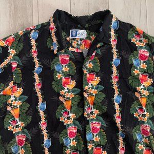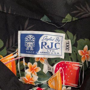 Hawaiian Shirt Styled By RJC Drinks Blue Mai Tais Leis Flowers Black Floral 3XL