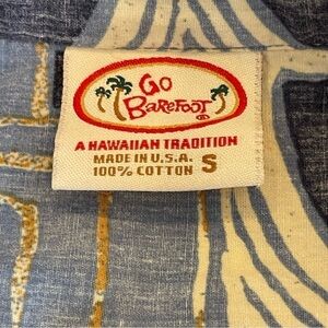Vintage Hawaiian Shirt Go Barefoot Cotton Beach Vacation Tropical Tribal Resort Summer