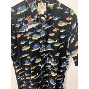 Hawaiian Shirt Vintage John Severson Fish AOP Button Up Shirt Size Large Cotton