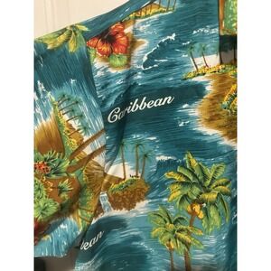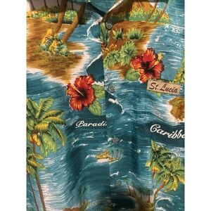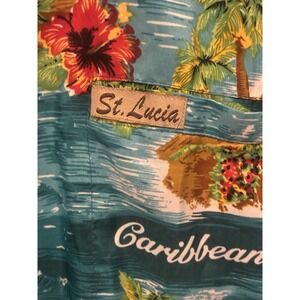 Hawaiian Shirt XL St Lucia Men's Print Split Hem Blue Caribbean Short Sleeve