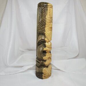 Hawaiian Tiki Totem 14.5" Hibiscus Wood Hand carved Intricate Tribal Design