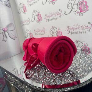 Bright pink lounge cover by Hawaiian Tropic. Perfect for sunny days by the pool. Some marks on fabric.