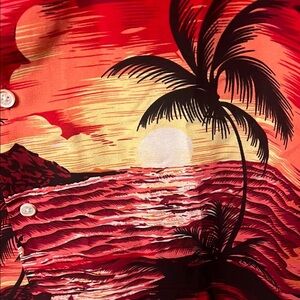 Hawaiian Vacation Red and Black Casual Button Down Shirt with Tropical Print
