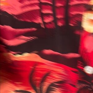 This casual button-down shirt features a vibrant red and black tropical design, perfect for relaxed outings. Its smooth texture and comfortable fit make it an ideal choice for vacation wear.