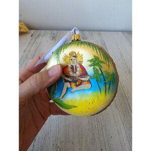 Hawaiian bird of paradise guitar coin glass ornament remember gold glitter Xmas