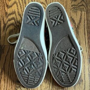 Hawaiian floral Converse All Stars Lux, hidden wedge sneakers, size 7.5.
