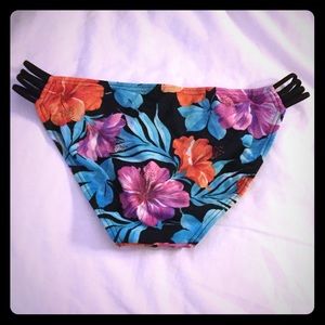 Colorful bottoms, Hawaiian floral print, strappy open sides, size small, never worn.