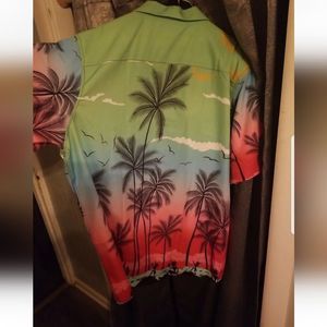 Hawaiian Multicolored Palm Tree Button Down Shirt Short Sleeve NWOT Mens Sz. XL