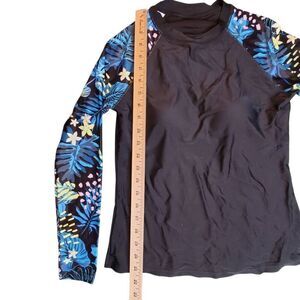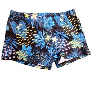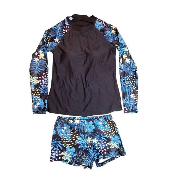 Hawaiian Print 2 Piece Swimsuit Long Sleeve Top With Boy Shorts Size XS