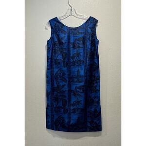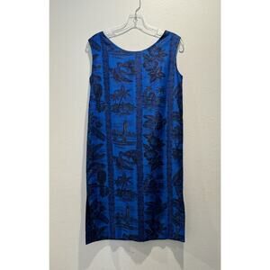 Hawaiiana Modes Honolulu XS VTG Dress Blue Gold Palm Tree Hawaiian Print Resort