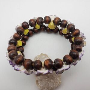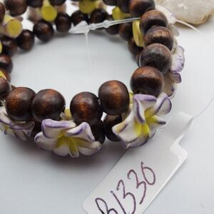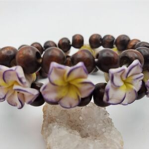 Hawaiian sunshine tropical flower wooden beaded bracelet B1330