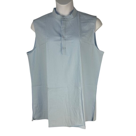 Hawalili Womens Sleeveless Light Blue Mandarin Collar Top XL Polyester Blend New