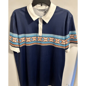 Hawalili Men’s Blue Southwest Pattern Polo Shirt Sz Medium NWT.