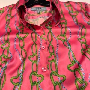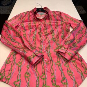 Excellent condition. Lovely Women’s Hawes & Curtis pink button up collared blouse with chain link pattern. UK size 8 US size 6 (small). Please see photos for measurements