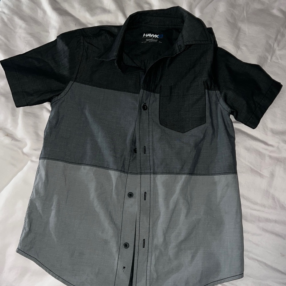 Gray boys size small shirt sleeve dress shirt, color is charcoal gray and gray