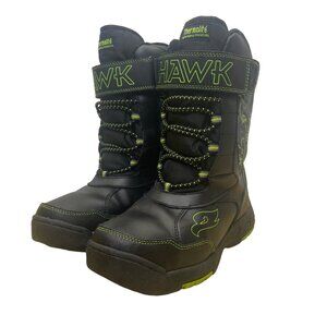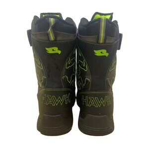 Hawk Boys Black/Neon Green Skull Detail Lace-Up Thermolite Insulated Boots Sz