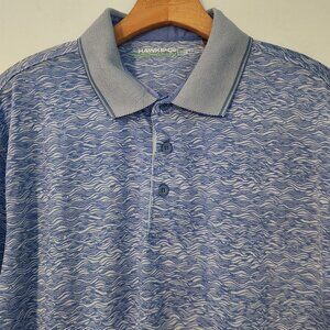 Hawk & Co Performance Golf Polo Shirt Light Blue Waves Short Sleeve Mens Large