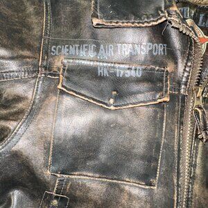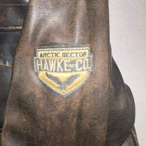 Hawke & Co - Boys Leather Jacket Fur Interior Aviator Scientific Transport Sz 7