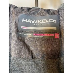 With a size of 16 and a chest size of 18" laying flat or 36" round, this raincoat-style jacket has an athletic fit and is machine washable for easy care. It's lined with polyester and has a zipper accent, making it both functional and fashionable. The jacket is suitable for winter and fall seasons and is great for gym and training, walking, hiking, running, and jogging. Get this high-quality jacket from a trusted brand like Hawke & Co. today! No issues spotted No stains, smells or holes Zipper intact and works Snaps in pockets work great Shoulder seam to bottom seam 23 Arm length 22.5 Waist is 18 laying flat 36 round Please see all pics If you have any questions please message me. Thanks again Ships fast