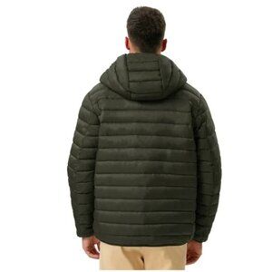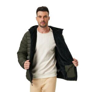 This men's puffer jacket combines warmth and style with its faux fur lining and practical hood. The olive green color adds a modern touch, while the full zip closure ensures versatility.