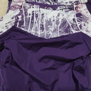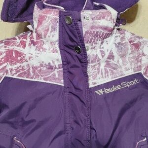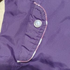 Fabulous condition purple and white jacket. one jacket with 2 jackets inside for 2 different seasons. this has the zipper with snaps and also insulated piece made of fleece inside to keep little one warmer in cold months. zipper hood. can take off when remove insulation inside becomes more for fall. cuffs with Velcro. 2 front pockets. Can use the fleece inside jacket by itself in warmer months but still needing a lighter jacket. in excellent condition. size 2T Adorable 🥰