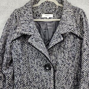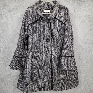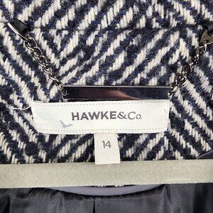 Hawke & Co Women's Size 14 Black White Herringbone Wool Blend Snap Jacket Coat
