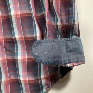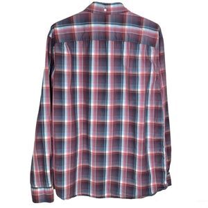 Hawker Rye Button Down Shirt Mens Large Slim Fit Long Sleeve Preppy Red White and Blue Plaid Oxford
