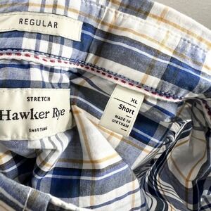 Hawker Rye Button Down Shirt Men's Size XL Short Blue Plaid Stretch Long Sleeve