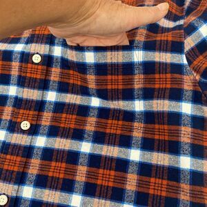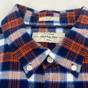 Hawker Rye Flannel Plaid Slim Button Down Long Sleeve Shirt Fall Navy Orange M
