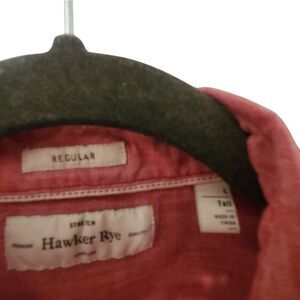 Hawker Rye mens cranberry red short sleeve casual nice quality heavy weight 98% cotton 2% spandex button down shirt Sz L Tall.