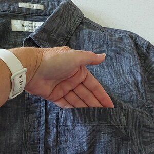Hawker Rye Slim Stretch Gray Print Short Sleeve Button Down Shirt Men's Size M